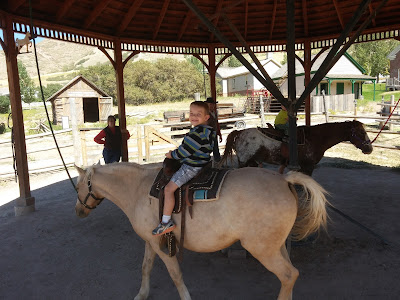 On our way back to the entrance, we stopped at a house where you could play with pioneer toys, wash clothes on a washboard, and plow a field. James and Nolan actually went all the way down and back pushing the plows by themselves. I think they were cut out for pioneer life!