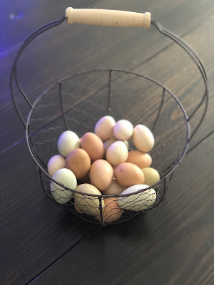 A sweet family in our ward gave us a basket filled with treats for Christmas. The basket is perfect for collecting eggs!