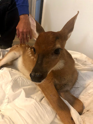 Anthony offered to take in an injured fawn for a friend's granddaughter who accidentally hit it with her car. He spent an entire day calling around different rescues to try to find a place that could take him in and fix him up. We finally found a place close to the zoo, but they didn't open until after our appointment at the zoo. Our solution was to bring the deer to Anthony's parents' house while we went to the zoo and afterward take him to the rescue.